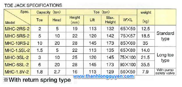 KÍCH CON ĐỘI MÓC 2.5 TẤN ĐỘI ĐẦU 5 TẤN MODEL MHC-2.5RS KAWASAKI